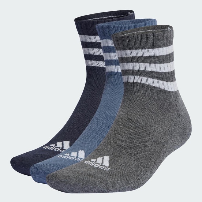 Meia Cano Médio adidas Cushioned Três Listras Sportswear com 3 Pares - Adulto