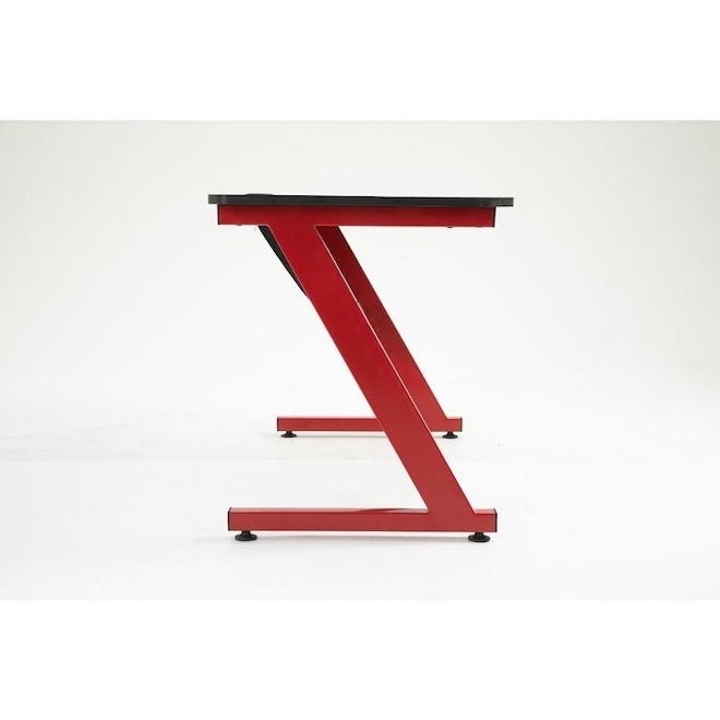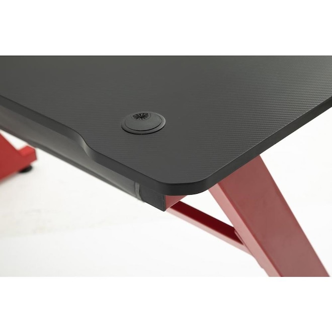 A mesa foi projetada para suportar os melhores setup do mercado, oferecendo resistência com a sua base em metal vermelho e tampo em MDF revestido com melamina preta.