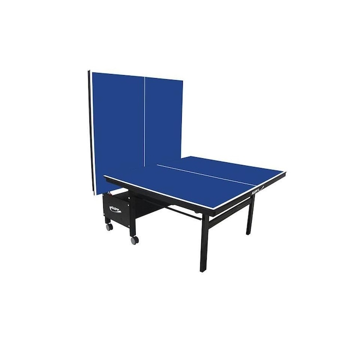 Mesa para Tênis de Mesa Oficial com Rodizios e Sistema "Paredão" 18mm MDF Mesa desmontável para tênis de mesa com campo de jogo confeccionado em MDF de 18 mm de espessura e com acabamento em primer azul e linhas demarcatórias na cor branca, possui pés dobráveis em madeira maciça e com rodízios, as medidas oficiais e atendem aos padrões da ITTF (International Table Tennis Federation). Permite o uso como "paredão" para treino solitário. Garantia contra defeitos de fabricação: 03 meses Peso aproximado: 85 Kg Tampo em MDF; Acabamento em primer azul com secagem UV e linhas demarcatórias brancas; Pés de madeira maciça dobráveis com rodízios; Permite o uso como ‘‘Paredão’’ para treino solitário; Pés fixados nas laterais, proporcionando melhor estabilidade; Suporte e rede não acompanham produto; Medidas da Mesa: C x L x A – ( 2,74 x 1,52 x 0,76 ) m. Medidas da Embalagem C x L x A: ( 1,56 x 1,41 x 0,15 ) m. Cubagem: ( 0,32994 m³ ) ref: K1084 Fabricante: Klopf Garantia Contra Defeitos de Fabricação.ref: M01CTB