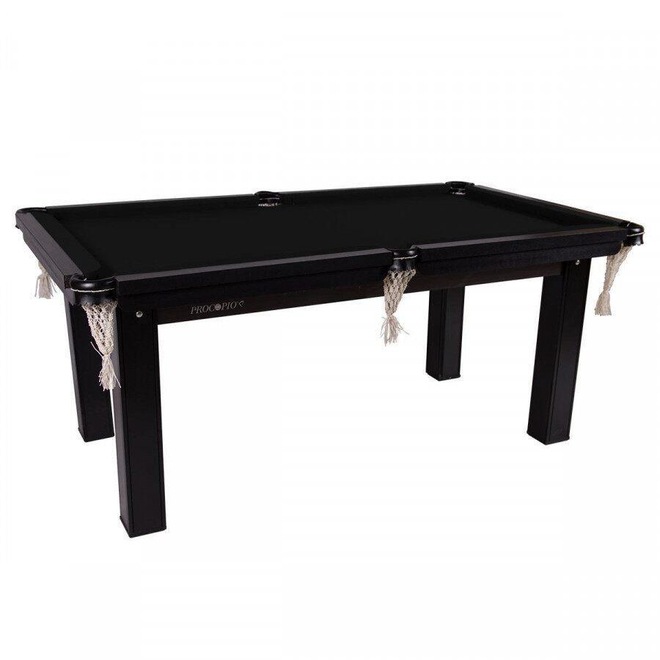 A Mesa Sinuca Bilhar tem a superfície de jogo de 15mm revestido com tecido acrilico, jogo de caçapas em courvin, com redes e acabamento revestido em ébano.