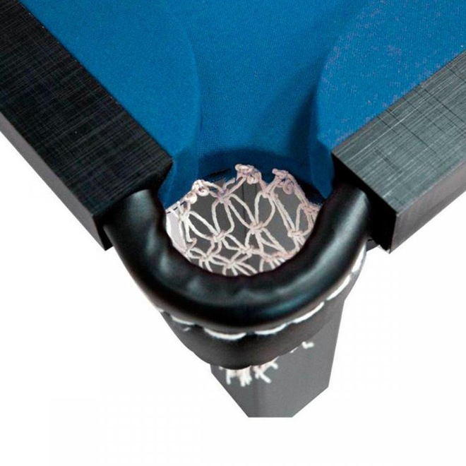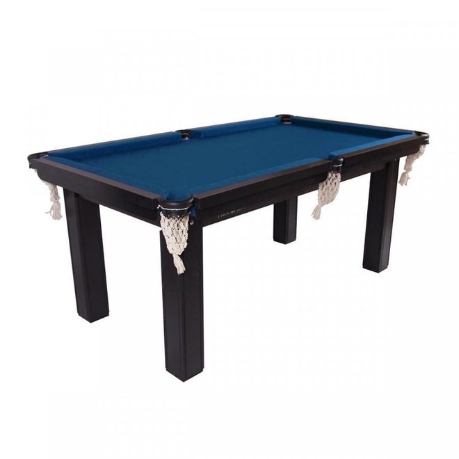 A Mesa Sinuca Bilhar tem a superfície de jogo de 15mm revestido com tecido acrilico, jogo de caçapas em courvin, com redes e acabamento revestido em ébano.