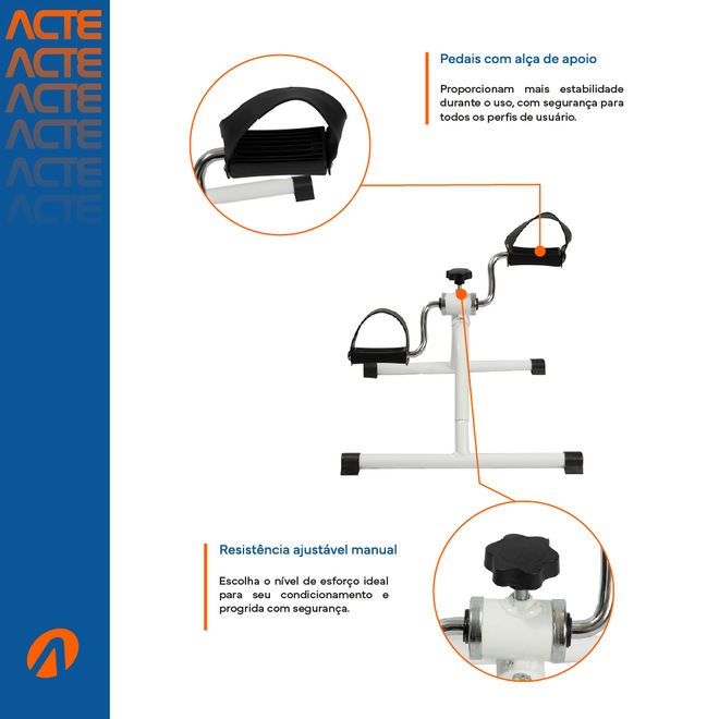 Pedais com alça de apoio: Proporcionam maior estabilidade e segurança durante o exercício, ideal para todas as idades.