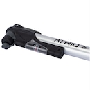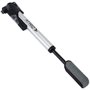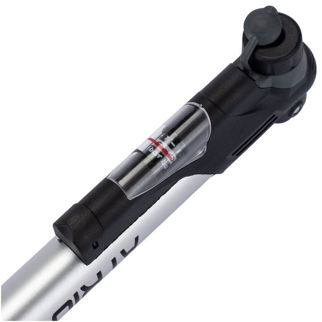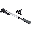 Sua pressão máxima é de 80Psi, possui manômetro e a vantagem reversível de uso para bicos presta (diâmetro reduzido para inflar pneus mais finos e leves em bikes de estrada ou mountain bikes) e bicos schrader (conhecida como válvula americana ou válvula de bico grosso para inflar bikes e automóveis).