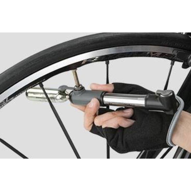 A distinção desta Mini Bomba está no inflador de CO2 integrado, estrategicamente localizado no cabo. Para utilizá-lo, basta acoplar o tubo de CO2 de 16g na extremidade do cabo, encaixar a lateral do cabo na válvula do pneu e pressionar para liberar o ar comprimido, inflando o pneu de maneira eficiente e sem esforço.