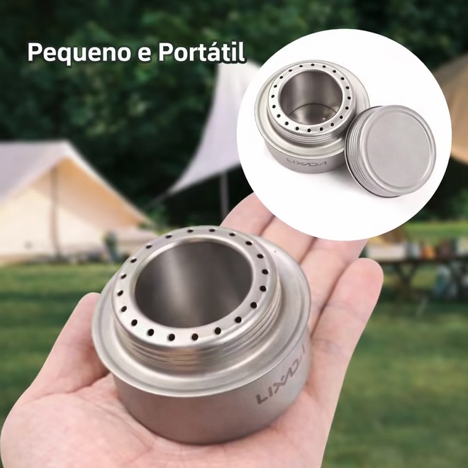Este fogareiro a álcool é construído em liga de alumínio, superleve e durável.Seu tamanho mini facilita caber em qualquer bolso ou mochila, muito conveniente para acampar, fazer caminhadas, fazer mochila, fazer piquenique e outras atividades ao ar livre.