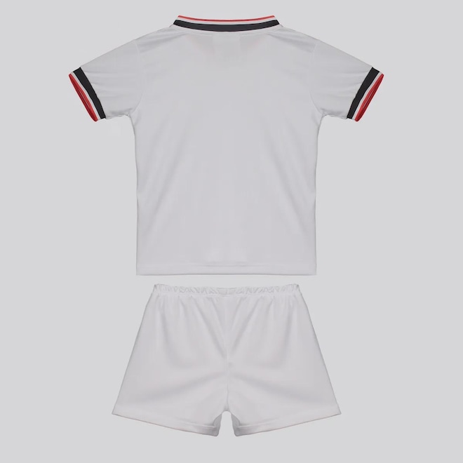 Contém: 1 camisa e 1 calção Composição: 100% Poliéster Ajuste calção: Elástico Escudo: Estampado Clube: São Paulo Origem: Nacional Manga: Curta Gola: V Dimensões aproximadas (A x L): Camisa 01 ANO: 39 x 29 cm 02 ANOS: 41 x 31 cm Calção 01 ANO: 22 x 20 cm 02 ANOS: 24 x 22 cm