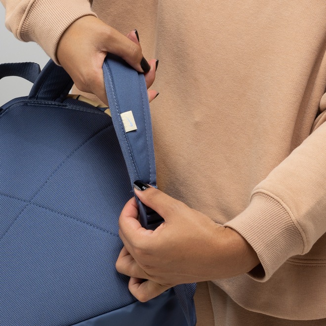 A Mini Mochila conta com capacidade de 11 litros e é feita em poliéster com a MOVE TO ZERO, ação da marca para produtos mais sustentáveis, o seu fechamento é em zíper.
