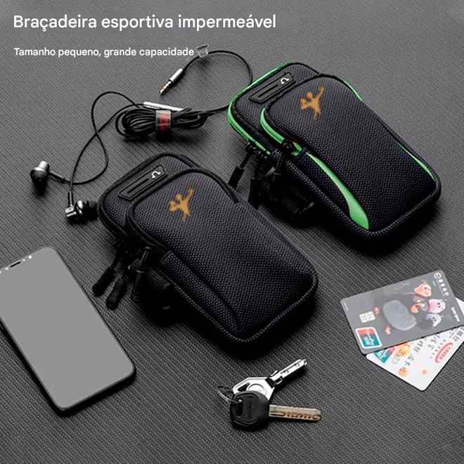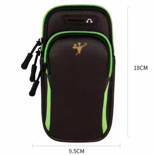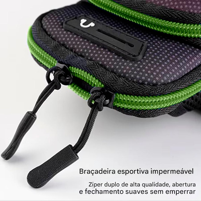 O sistema de fechamento são com fecho de contato e zíper garante que o celular preservado seguro e protegido durante o exercício, evitando quedas e danos ao aparelho. Além disso, uma braçadeira ajustável permite que a bolsa seja adaptada ao tamanho do braço, proporcionando maior conforto e liberdade de movimento.