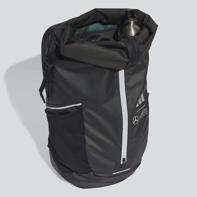 Carregue todos os seus equipamentos confortavelmente enquanto torce pela equipe de Fórmula 1 da Mercedes, AMG Petronas. Esta mochila tem espaço para notebook e um bolso frontal com zíper para fácil acesso a tudo o que você precisa carregar. As cores do time e o logo da equipe de Fórmula 1 da Mercedes - AMG Petronas garantem o visual oficial. Este produto é feito com pelo menos 50% de materiais reciclados. Ao escolher o reciclado, podemos reutilizar materiais já criados, o que ajuda a reduzir o desperdício e a nossa dependência de recursos finitos, além de reduzir a pegada dos produtos que fabricamos.
