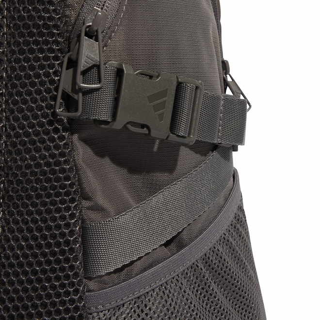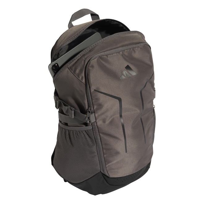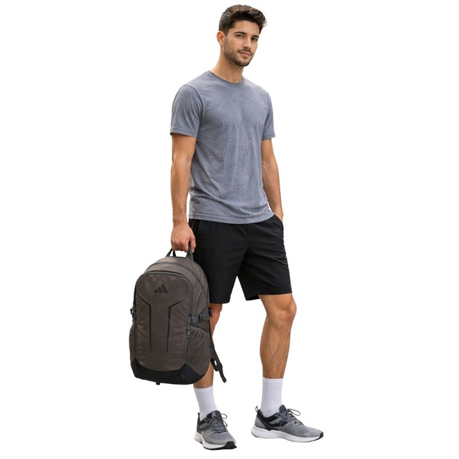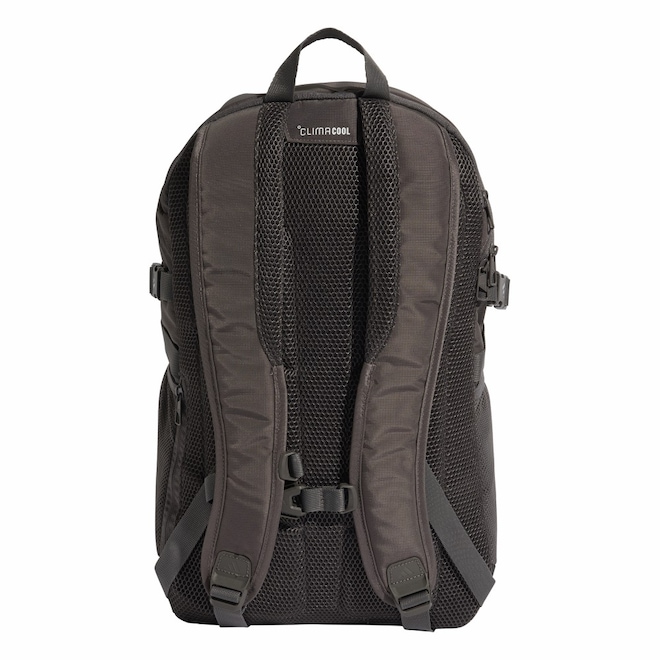 Possui bolso externo para notebook, compartimento ventilado para tênis e divisória seca para separar os itens usados. Conta com alças acolchoadas, faixa peitoral e painel traseiro com ventilação Climacool para maior conforto. Os detalhes refletivos aumentam a visibilidade em ambientes com pouca luz.