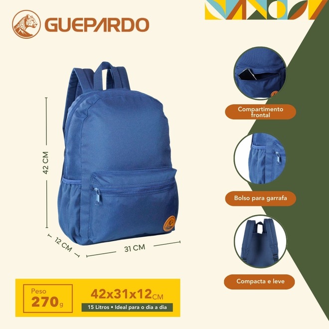 Transforme seu dia a dia com a Mochila Escolar Amazônia da Guepardo. Compacta, leve e resistente, ela oferece praticidade e organização para suas atividades diárias, seja na escola ou em compromissos urbanos.