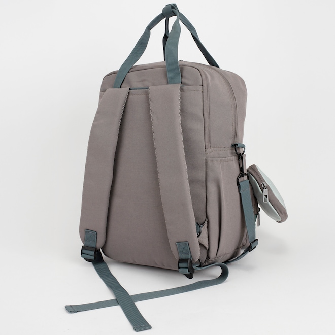 Conta com alças duplas acolchoadas que podem ser escondidas, proporcionando conforto no transporte e um visual mais limpo quando não estão em uso. A alça de ombro é ajustável e removível, oferecendo diferentes formas de uso conforme a sua necessidade.