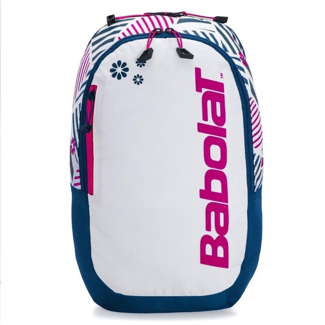 Descrição da Mochila Babolat Kids Branca Azul e Rosa