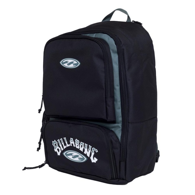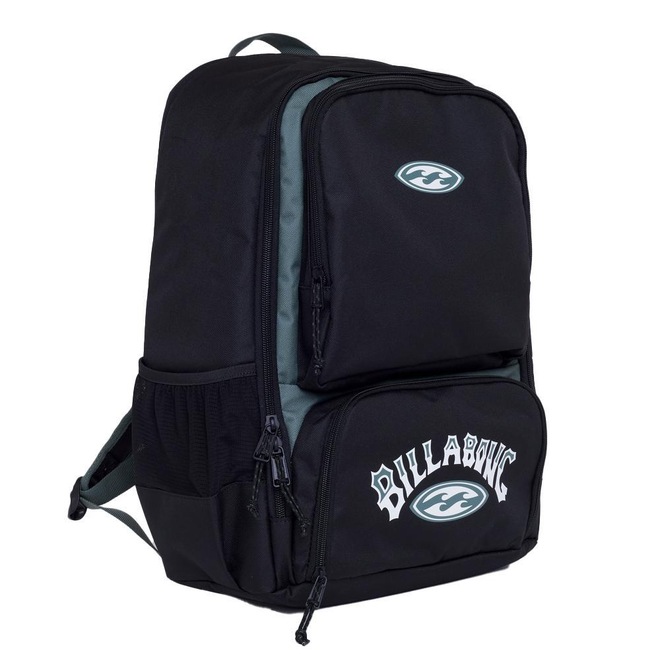 Mochila Billabong com compartimento principal, bolso interno almofadado para laptop, bolso lateral em mesh para armazenamento de garrafas, painel externo traseiro reforçado e almofadado, lancheira modular, estojo fino e com alças almofadadas.