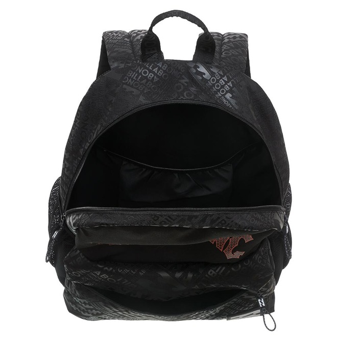 Coleção confeccionada em poliéster. Painel frontal com logo em silk. Bolso frontal com estampa corrida e patch emborrachado com logo. Puxadores de zíper em corda com logo emborrachado. Alças ajustáveis com estampa corrida, etiqueta de tecido e webbing com logo em jacquard. Costura personalizada no painel traseiro.