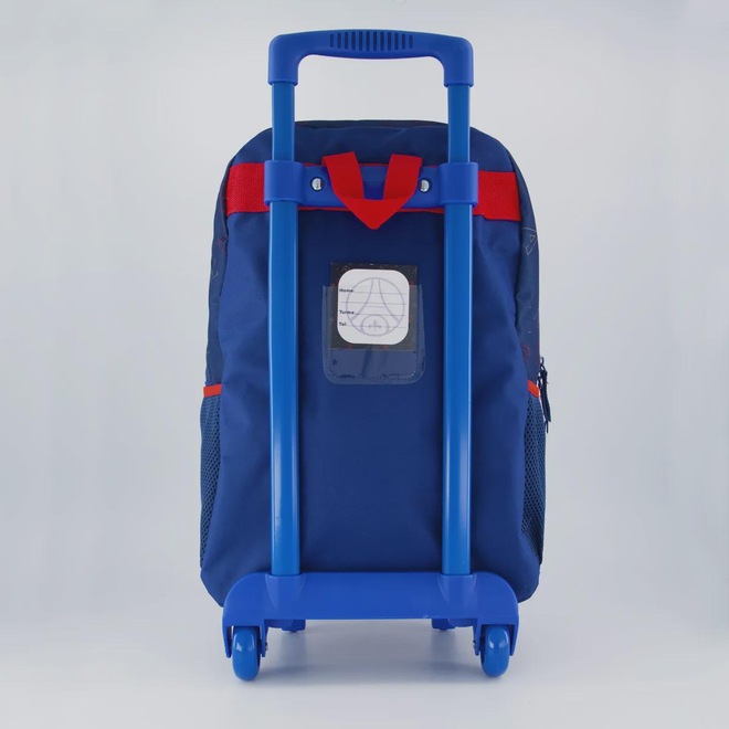 Dimensões aproximadas (A x L x P): 48 x 31 x 20 cmAbertura/fechamento: Zíper bidirecionalComposição: 100% PoliésterCompartimento: Um principal amploAlças: Uma manual e outra retrátilCor predominante: AzulCapacidade/ Volume: 20 LPeso aproximado: 900 gPorta-notebook: NãoPorta-garrafas: SimOrigem: ImportadaClube: Paris Saint GermainEscudo: EmborrachadoIdade: InfantilBolso: Um frontal, com zíperTamanho único*Possui carrinho embutido
