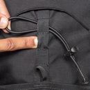 Amplo bolso frontal ajustável em 3 pontos com cordão elástico e regulador