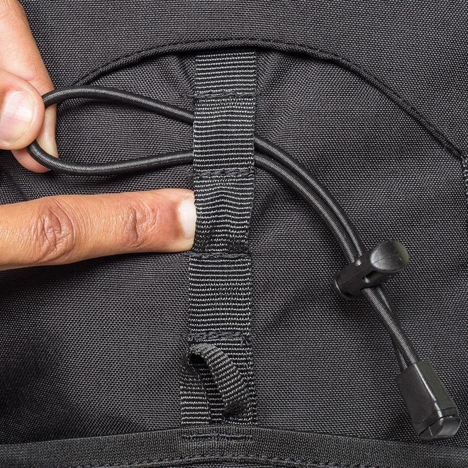 Acompanha duas fitas destacáveis de 15mm para compressão ou prender carga nos loops fixos em diferentes pontos da mochila