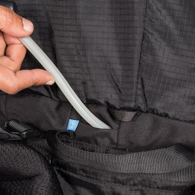 - bastão de caminhada, compartimento para reservatório de água e bolsos organizadores.