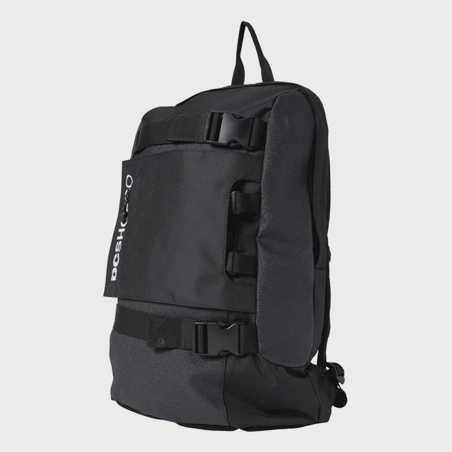 Mochila.Tecido: 100% poliéster reciclado 600D e forro 100% poliéster reciclado.Painéis contrastantes com material de aderência emborrachado.Grande compartimento principal.Bolso interno acolchoado para laptop.Bolso interno com organizador.2 straps para prender skate com fechos de velcro.Aba externa com velcro fecho que esconde 2 alças com fechos de fivela.Bolso pequeno com zíper e bordado DCSHOECO na aba frontal.Painel traseiro acolchoado e alças.Alças com correias e alça no peito.Dimensões: 51cm altura x 34 cm largura x 18,5 cm profundidade.Volume: 27 L.Composição: POLIÉSTERref: M17BUV