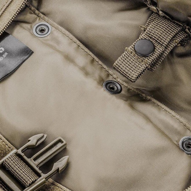 Tem bolso frontal e conta com sistema MOLLE que possibilita o usuário personalizar o uso e acomodar equipamentos.