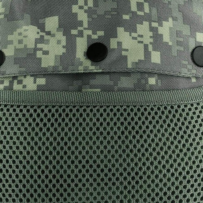Tem bolso frontal e conta com sistema MOLLE que possibilita o usuário personalizar o uso e acomodar equipamentos.