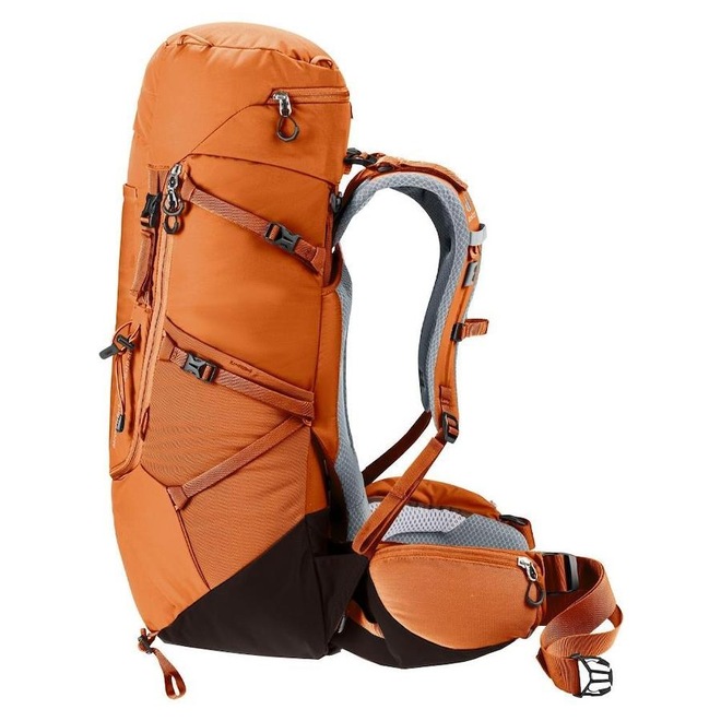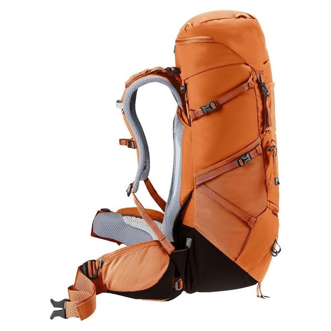 Mochila para caminhadas. Possui sistema de ventilação Aircontact Core feito em espuma de célula aberta recoberta com tecido Air Mesh, sistema Vari-Slide de ajuste da altura das alças, barrigueira acolchoada, capa de chuva feita Nylon-Taffeta, bolso para fixação de sistema de hidratação, etiqueta de SOS, bolsos laterais e na tampa, tira peitoral, abertura em zíper do compartimento inferior. Fivelas feitas em Poliamida 6.6.