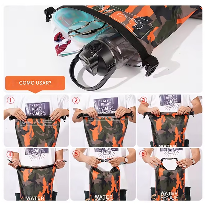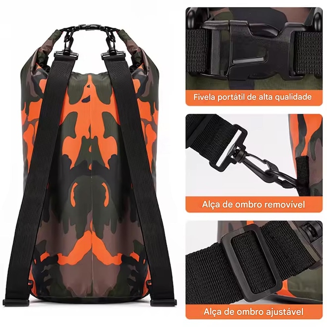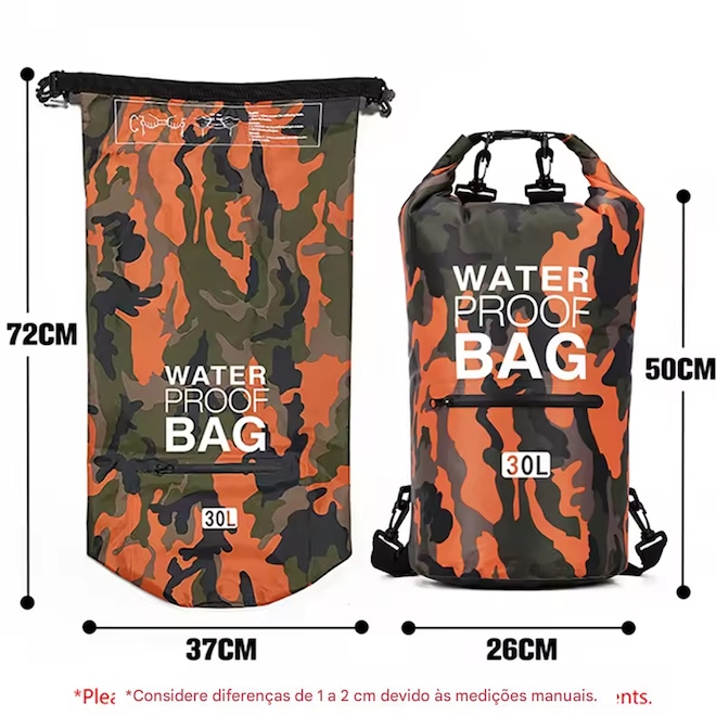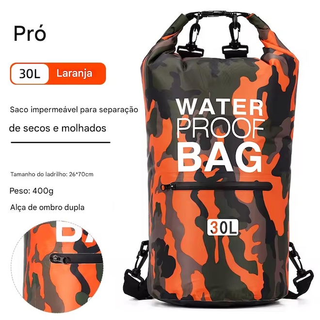 Mochila Dobrável Gold Sports Dry Bag 30 Litros é impermeável, a neve, areia prova, dustproof. Você pode atravessar rios, caminhar sobre chuva, neve e levar a praia pois é uma mochila totalmente impermeável.