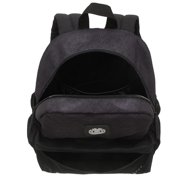 Coleção confeccionada em poliéster mescla. Painel frontal com patch emborrachado com logo. Bolso frontal com impressão em silk. Puxadores de zíper emborrachados com logo em baixo relevo. Alças ajustáveis com webbing com logo em silk. Costura personalizada no painel traseiro