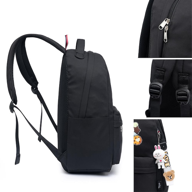 Venha conosco nessa aventura, você também vai amar nossos queridinhos. Características do produto: Material do produto confeccionado em tecido 100% Poliéster Alças ajustáveis para o conforto macio para uso diário A alça superior é perfeita para quando você quiser carregar sua bolsa e dar uma folga aos ombros. 1 bolso frontal pequeno para objetos como: chaves, documentos, canetas, etc 1 bolso principal 1 divisória interna Alça de Costas reguláveis e reforçadas Alça de mão reforçada Chaveiro personalizado Zíperes personalizados e ergonômicos Tipo de fecho: Zíperes e velcro Produto autêntico, resistente e original Design super arrojado e refinado, moderna, estilosa, e sem deixar os seus objetos sempre a disposição, em qualquer ocasião Especificações técnicas: SKU: YP0032Z EAN: 7899920928654 Cor: '''' Medidas AxL:P: 28x22x12 Capacidade: 7l Peso: 225g Cuidados de conservação: Evite carregar excesso de peso Embalar objetos com cantos vivos cortantes Para limpeza, utilize apenas pano úmido ou esponja macia e sabão neutro. Não expor a luz do sol para secar Não utilizar nenhum produto químico para limpeza Conservar em local seco e arejado 3 meses de garantia contra defeito de fabricação.