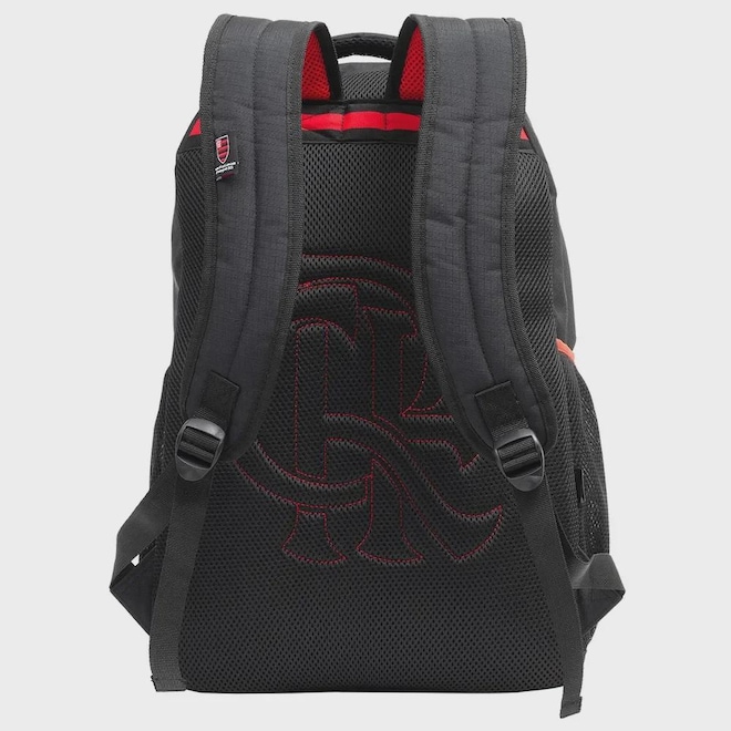 * Detalhes funcionais: O puxador do zíper traz o escudo do Flamengo, unindo funcionalidade e estilo. A costura vermelha com o logo do clube nas costas é um toque exclusivo que destaca a mochila no meio da multidão.