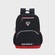 * Bolso frontal com zíper invertido e detalhes em vermelho que destacam o visual.