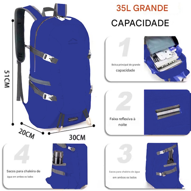 4. Material durável: Criada a partir de materiais de alta qualidade, a mochila para caminhadas é resistente ao desgaste, proporcionando um companheiro confiável e resistente a riscos para todas as suas aventuras.