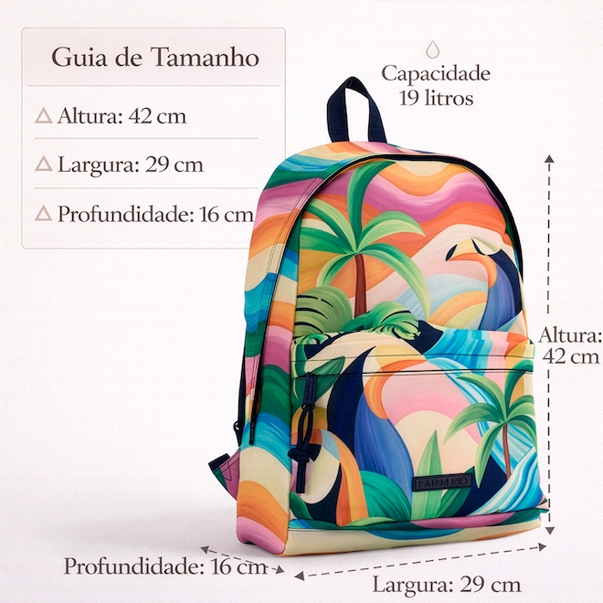 A Mochila Farm Xodó Universitaria Terra Surrealis é a união perfeita de funcionalidade e personalidade. Com capacidade de 19 litros, oferece o espaço ideal para organizar livros, cadernos e notebook com segurança e conforto. Seu design ergonômico conta com alças ajustáveis que facilitam o transporte diário, enquanto a estampa exclusiva Terra Surrealis garante um visual autêntico e moderno para a faculdade, trabalho ou viagens curtas.