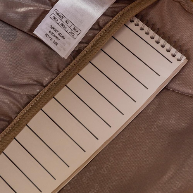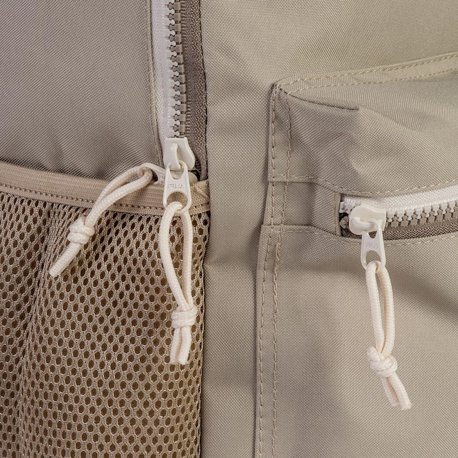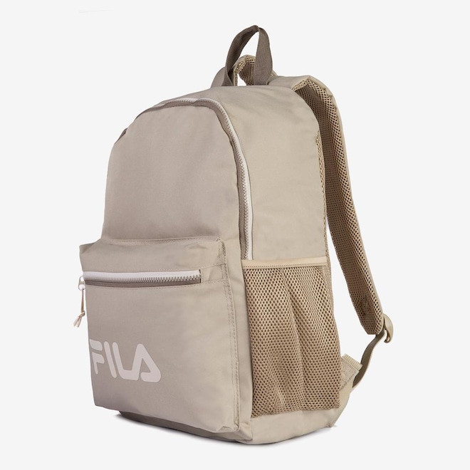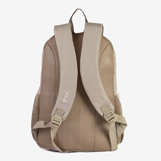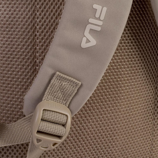Mochila confeccionada em poliéster com forro personalizado. Apresenta compartimento principal com fechamento em zíper double color e puxador duplo. Possui bolso frontal com logo FILA estampado e fechamento em zíper double color, além de bolsos laterais, correia com fivela de ajuste, costado e alças das costas com parte interna em airmesh. Dimensões: 30 cm X 43 cm X 14 cm. Capacidade: 18 L.
