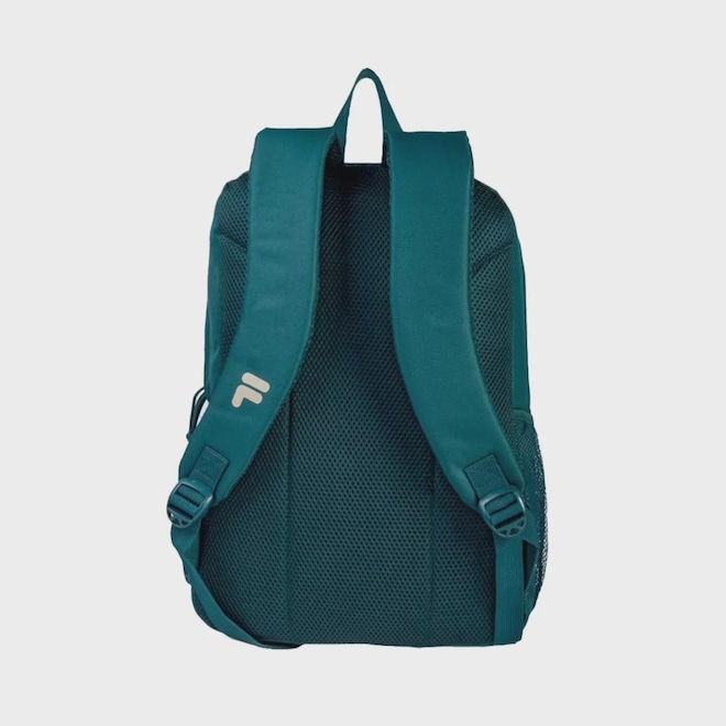 Confeccionada em poliéster, com fechamento em zíper, puxador de cordão, forro personalizado contrastante e painel frontal com maxi estampa Fila Letter bicolor vertical. O bolso frontal é construído em tecido Ripstop com abertura vertical e fechamento em zíper com puxador de cordão. Bolsos laterais em Airmesh com elástico na abertura. As costas e o lado interno das alças são acolchoados em Airmesh. Logo F Floating estampado na alça.