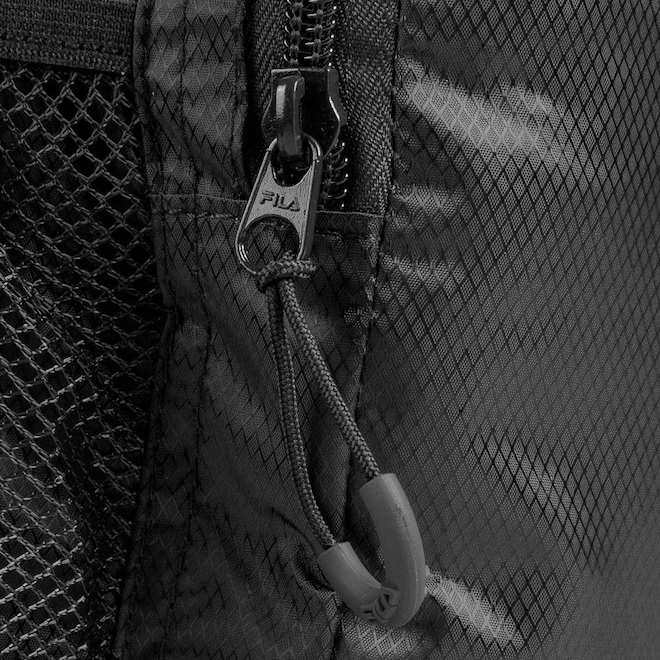Mochila confeccionada em ripstop diamantado de poliéster com forro personalizado. O compartimento principal possui fechamento tipo saco com cordão e regulador. O modelo conta com bolso frontal com o logo F-Box estampado, fechamento em zíper e puxador. Além disso, inclui bolsos laterais em mesh e correia com fivela de ajuste. Medidas: 29 cm X 40 cm X 16 cm. Capacidade: 18,5 L.