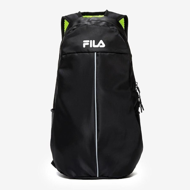 - Sobre o produto - Mochila Fila Performance - 28 Litros- Mochila Fila Performance - 28 LitrosMochila Fila Performance - 28 Litros Mochila Fila Performance - 28 Litros Ideal para a prática de corrida ou ciclismo, a Mochila Unissex Fila Performance possui amplo compartimento principal com fechamento em zíper reverso e puxador refletivo e bolso interno para notebook. O forro é em cor contrastante e traz arte personalizada Fila. Conta também com bolso lateral em Airmesh, tecido leve de poliéster. As costas são em AirMesh para maior conforto e respirabilidade. A alça é tipo camiseta com parte de baixo em AirMesh. A mochila Performance traz também correia no peito e na cintura em fecho de clip para maior estabilidade no corpo. O painel frontal possui detalhe em material refletivo. Logo Fila Letter refletivo no painel frontal e na alça. Dimensões (L X A X P): 45 cm X 22 cm X 16 cm. Capacidade: 28 L.- ref: M0ZY42