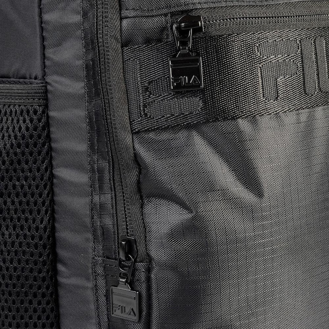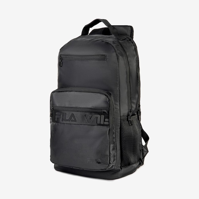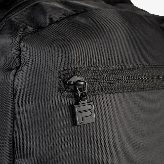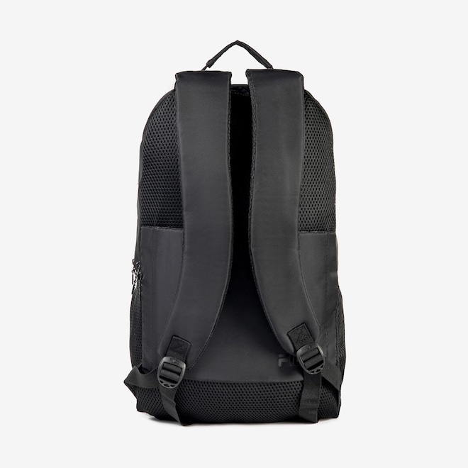 Mochila confeccionada em poliéster com forro personalizado. Apresenta compartimento para notebook e compartimento principal, ambos com fechamento em zíper e puxador duplo. O painel frontal possui bolso embutido e bolso em ripstop com logo FILA e detalhe em fita FILA em Jacquard. Contém bolsos laterais em mesh, costado com suporte para acoplar mala de rodinha, alças com airmesh na parte interna e correia com fivela de ajuste. Dimensões: 30 cm X 50 cm X 14 cm. Capacidade: 21 L.