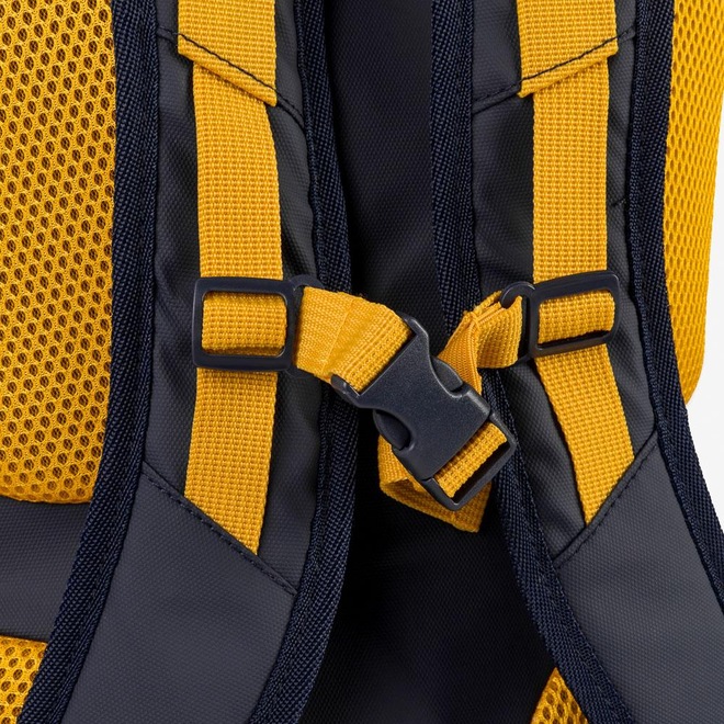 Mochila produzida em ripstop mini de poliéster, recortes emborrachados e forro personalizado. Apresenta compartimento principal com porta-notebook e fechamento em zíper com puxador duplo. O painel frontal possui bolsos verticais, elástico cruzado com regulador e logo F-Box. Possui bolsos laterais e costado ergonômico em airmesh, alças com airmesh na parte interna, correia com fivela de ajuste e cinta de peito com fivela. Dimensões: 32 cm X 52 cm X 18 cm. Capacidade: 30 L.