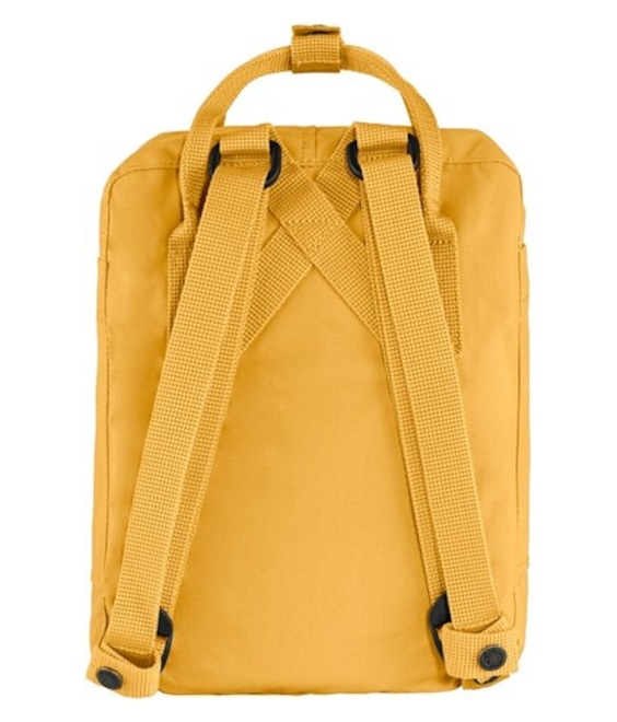 A Mochila Fjllrven Knken Mini Amarelo conta ainda com bolso frontal com zíper e dois bolsos laterais abertos, ideais para itens de acesso rápido. As alças de ombro ajustáveis proporcionam um encaixe confortável, enquanto as alças superiores permitem transporte manual quando necessário.