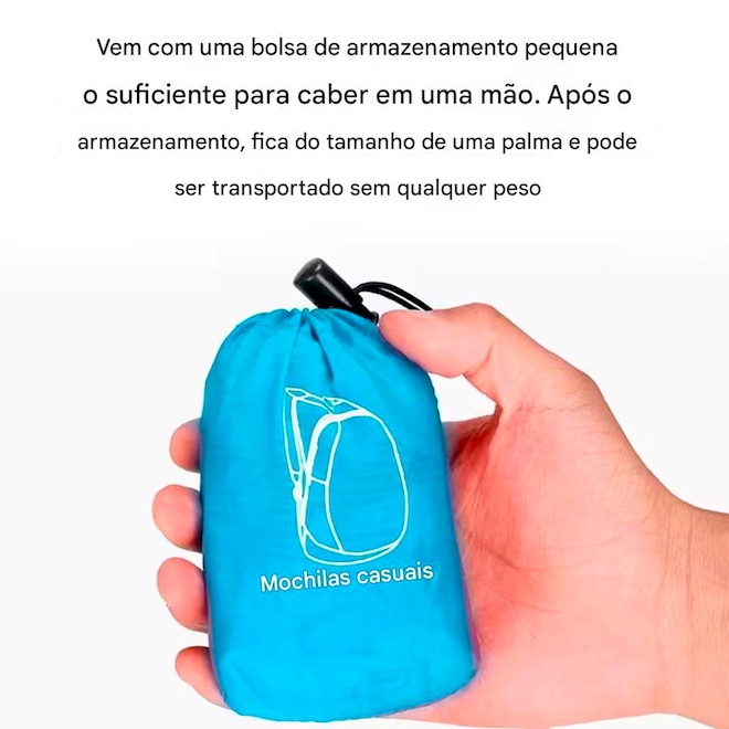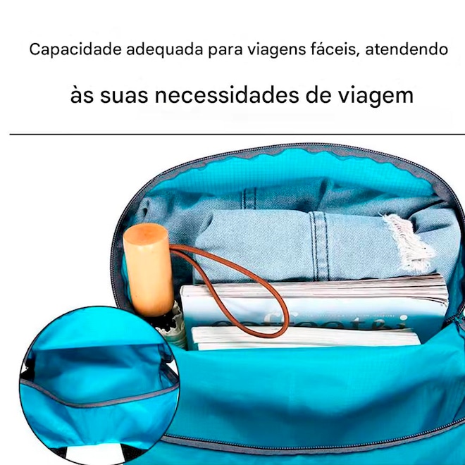 1. Compacto e conveniente: A mochila portátil dobrável possui um design dobrável que facilita o armazenamento e o transporte sem ocupar espaço extra. Ideal para viajantes que precisam de uma opção versátil e leve.