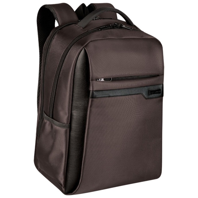 Produzida em poliéster com forro personalizado e detalhes em PVC, possui compartimentos dedicados para notebook e tablet, além de bolsos internos que auxiliam na organização de acessórios e objetos pessoais.