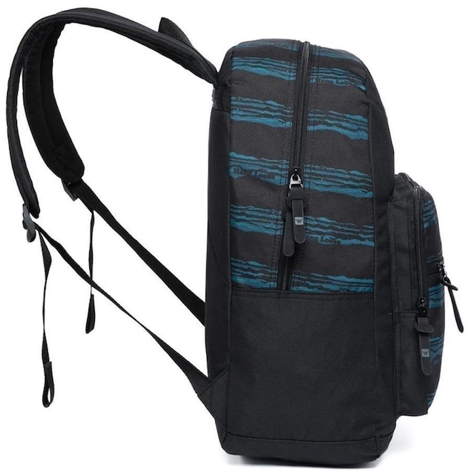 Mochila Hang Loose construído em poliéster 900D, com compartimento para notebook de até 15", compartimento principal grande e outro compartimento frontal com fechamento em zíper, além de alça de costas acolchoadas e alça de mão.