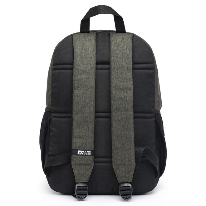 Mochila Hang Loose construída em poliéster 600D texturizado, com bolso principal grande e bolso frontal menor, ambos com fechamentos em zíper, compartimento para notebook até 15,6", além de contar com uma etiqueta da marca na parte frontal.