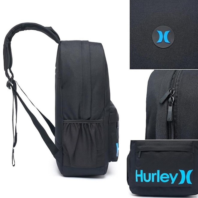 Características do produto: - Marca: Hurley - Material: 100% Poliéster - Medição (A*L*P): 41*28*12 - Peso: 0.305 - Capacidade: 13L - Capacidade para notebook de até 14? (não possui compartimento acolchoado) - Compartimento principal com amplo espaço interno que comporta cadernos, pastas e etc.. - Compartimento menor para pequenos objetos e documentos pessoais. -Bolsos laterais telados que comportam garrafa de 500ml - Possui alça de mão - Alças reguláveis e acolchoadas - Fechamento em zíper - Mochila autêntica, resistente e original - Logo, detalhes e zíper personalizados Sobre a marca: - A essência da Hurley está baseada no amor pelo oceano e seu constante estado de mudança. Com fortes raízes em cultura de praia, somos todos sobre inclusão e positividade. A marca foi criada com o objetivo de facilitar os sonhos dos jovens. Música e arte são conexões comuns que nos trazem juntos. Como resultado do seu processo de evolução, a marca se tornou mais urbana aos longos dos anos. Cuidados de conservação: Evite carregar excesso de peso Embalar objetos com cantos vivos cortantes Para limpeza, utilize apenas pano úmido ou esponja macia e sabão neutro Não utilizar nenhum produto químico para limpeza Conservar em local seco e arejado *** 90 dias de garantia contra defeitos de fábrica***ref: M0RD5V