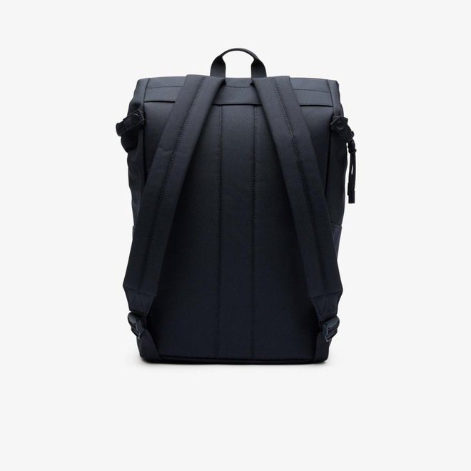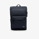 Praticidade: Bolso externo com zíper e o emblemático crocodilo Lacoste em destaque.