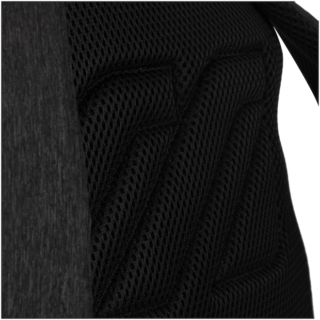 Seu painel traseiro é em mesh (Fibras em malha com tramas abertas) e levemente acolchoado.