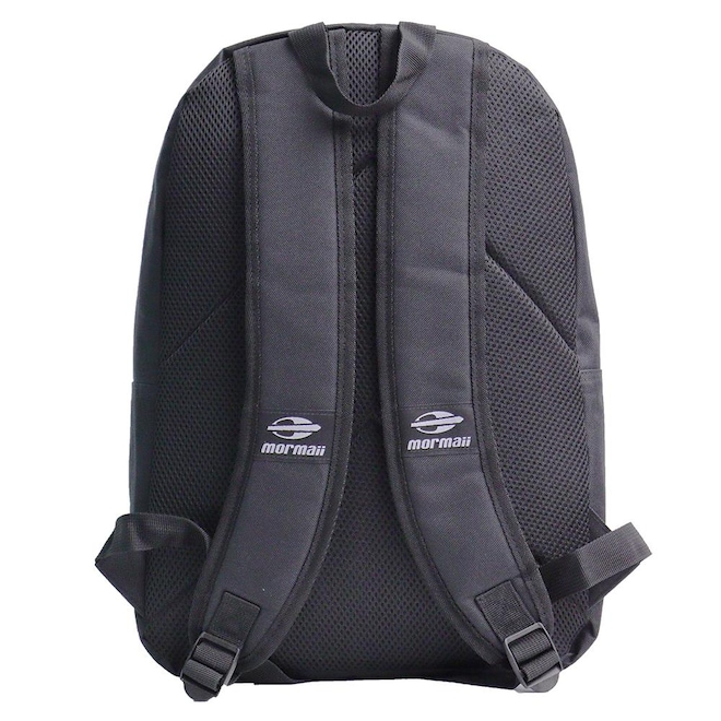 Mochila Mormaii com alças acolchoadas, alça manual reforçada, espaço para laptop, costas acolchoada reforçada e costura dupla reforçada.