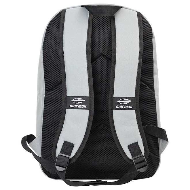 Mochila Mormaii com alças acolchoadas, alça manual reforçada, costas acolchada reforçada, costura dupla reforçada e etiquetas personalizadas.